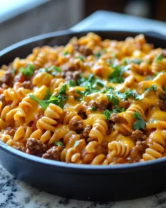 A comforting one-pan meal that blends the bold flavors of taco night with the creamy goodness of cheesy pasta. This quick and satisfying dish is perfect for busy weeknights, offering a hearty dinner with minimal cleanup and maximum flavor. Every spoonful is packed with seasoned beef, tender pasta, and melted cheese for the ultimate comfort food experience.
