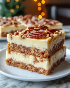 These decadent dessert bars combine two beloved classics—pecan pie and creamy cheesecake—into one irresistible treat. With a buttery graham cracker crust, a smooth cheesecake center, and a rich pecan pie topping, they’re perfect for the holidays, potlucks, or any cozy evening when you want a comforting, crowd-pleasing dessert.