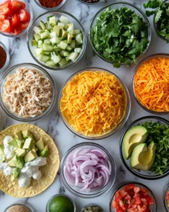 Tostadas are crispy, flat tortillas that are topped with flavorful ingredients. Unlike tacos, which are folded, tostadas are served open-faced. The crunchy base contrasts beautifully with savory chicken, creamy beans, fresh vegetables, and tangy toppings.