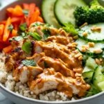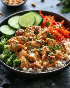 This vibrant and flavorful Buddha bowl brings together tender chicken, crisp vegetables, and a creamy Thai peanut sauce over a bed of rice. Perfect for a quick weeknight dinner, meal prep, or a nourishing lunch, it’s packed with nutrients, colors, and textures that make every bite satisfying. Inspired by traditional Thai flavors, this dish balances sweet, salty, tangy, and slightly spicy notes in a simple, approachable way.