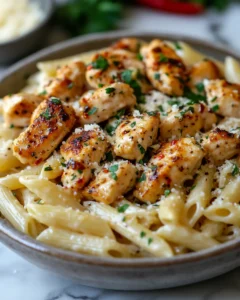 This recipe was inspired by those cozy, restaurant-style pasta dishes that feel luxurious but are surprisingly simple to recreate at home. It blends tender, golden-seared chicken bites with a velvety, garlic-infused cream sauce that coats every strand of pasta beautifully. Whether you’re cooking for your family, a special guest, or simply treating yourself, this dish delivers richness, balance, and irresistible flavor in every bite.