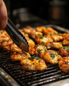 Flip the chicken pieces carefully, brush the other side with marinade, and return the tray to the oven. Continue baking for another 15–20 minutes, or until the chicken is fully cooked and the glaze looks thick and glossy. Turning the chicken halfway through ensures even browning and prevents any one side from becoming too dark.