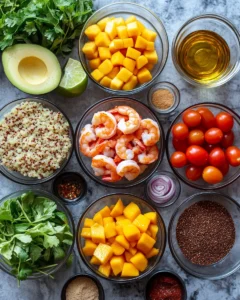 A refreshing and vibrant bowl combining juicy shrimp, sweet mango, and crisp greens—perfect for a light and nourishing meal.