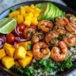 This shrimp bowl isn’t just visually stunning—it’s packed with flavor and nutrition. The natural sweetness of mango pairs beautifully with tender shrimp, while fresh greens add crunch and balance. It’s also highly customizable, making it easy to adjust based on what you have on hand.