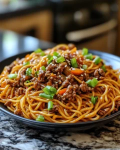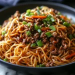 If you’ve ever wished your favorite takeout flavors could be made at home without complicated ingredients or long cooking times, this recipe delivers effortlessly. The sauce brings together soy, brown sugar, garlic, and ginger to create layers of flavor that cling beautifully to the noodles. Ground beef provides richness, while the addition of green onions and a hint of spice keeps the dish balanced and vibrant.