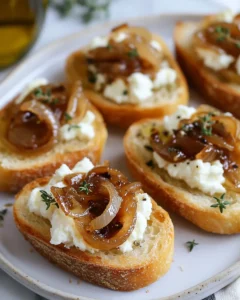 Hosting doesn’t have to be stressful. With this recipe, you can prepare the onions ahead of time, toast the bread quickly before guests arrive, and assemble the crostini in a matter of minutes. They look as impressive as they taste, making them perfect for casual or formal gatherings. Pair them with a fresh salad, seasonal fruit, or a selection of cured vegetables for a complete appetizer spread.