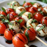 The inspiration for this recipe comes from the simplicity of Mediterranean-style food, where quality ingredients shine on their own. Growing up, simple tomato-and-cheese dishes were always a staple on the table, especially during seasons when tomatoes were at their peak. Mini Caprese Bites transform that familiar comfort into a bite-sized appetizer that works beautifully for parties, holidays, or everyday snacking. They prove that great flavor does not require complicated steps, just thoughtful ingredients and a little care.