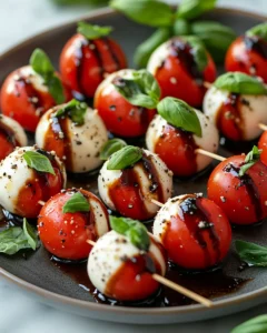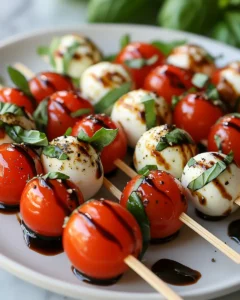 Mini Caprese Bites are incredibly versatile and can be adapted to suit different themes and preferences. For a more rustic look, arrange them on a wooden board with extra basil leaves scattered around. For formal events, line them neatly on a white platter and drizzle the glaze in a decorative pattern.