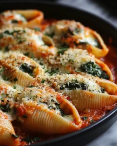 Spinach and ricotta stuffed shells represent everything comforting about home-cooked meals. They remind us that food does not need to be complicated to be meaningful. With simple ingredients, careful preparation, and a little time in the oven, this dish transforms into something that feels special every time it is served.