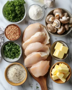 To make this Ultimate Creamy Mushroom Chicken Dinner, gather the following ingredients: