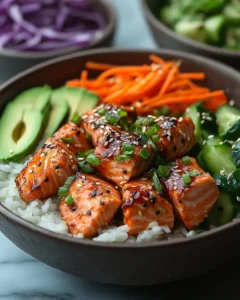Yes, these bowls are excellent for meal prep when stored properly. The rice and salmon can be cooked in advance and refrigerated in airtight containers for up to three days. To maintain the best texture, store the vegetables and sauce separately. When reheating, warm the rice and salmon gently in a skillet or microwave, then assemble with fresh toppings and sauce just before serving. This approach keeps the salmon from drying out and preserves the crispness of the vegetables, making each bowl taste freshly made.
